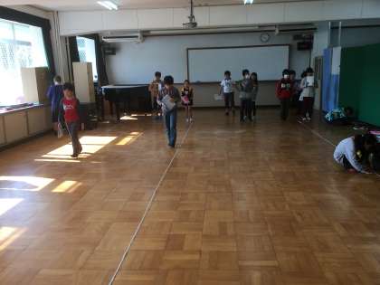 算数の学習「平均とその利用」の学習で,平均を使って自分の歩幅を知りました。またさらにそこから,廊下の長さを歩数で数え,およそ何mあるのか計算しました。