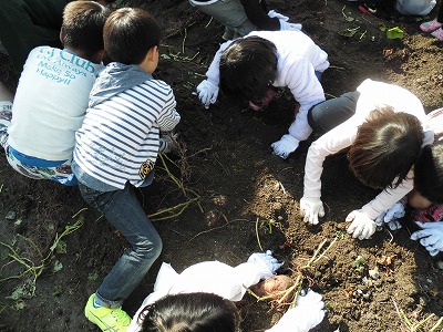 余談になりますが,サツマイモは南アメリカ原産のヒルガオ科の植物だそうです。1年生が夏に頑張って育てたアサガオもヒルガオ科。つまり,親戚同士なんですね。