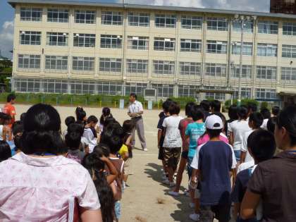 9月1日(水)この日は,「学校に不審者が入ってきた」とき,どうしたらよいかの避難訓練をしました。子どもたちの安全を第一に訓練を行いました。子どもたちは,真剣に訓練に取り組みました。そして,訓練の最後に学校長から,「いかのおすし」を守って自分の身を守りましょう。」と結びました。