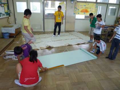 写真は,決勝委員会での話し合いと式典委員会で巨大なプログラムを作る準備をしているところです。