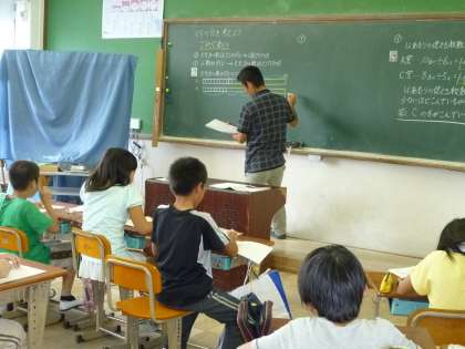 5年生は算数で「くらべ方を考えよう」を学習しています。この学習の中で「10枚の畳に6人と8枚の畳に5人ではどちらが込んでいますか。」ということを考えています。子どもたちはどうしたらいいのかなと「込んでいるほう」を求めるのに苦労しながら学習を進めています。正しい考え方を聞いてある子は,「あっ,そうだったんだぁ。」とつぶやいていました。