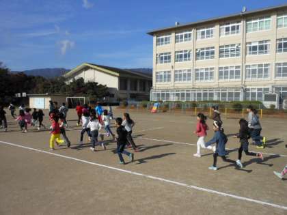 今週から,持久走記録会の本番に向けて練習を始めています。中間休みに全校で運動場に出かけ,走ります。2年生は小さい円の中をぐるぐるとまわり,何周走れたかを記録しています。「昨日より1周多く走れた!」とぐんぐん力がついていることが嬉しいようです。