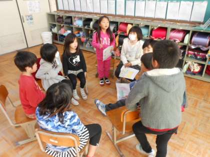 自分が想像した道具について,友だちと練り合い,今日は発表会を開きました。友だちからたくさんの質問や感想を受け,熱心に答えていました。
