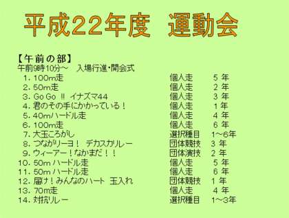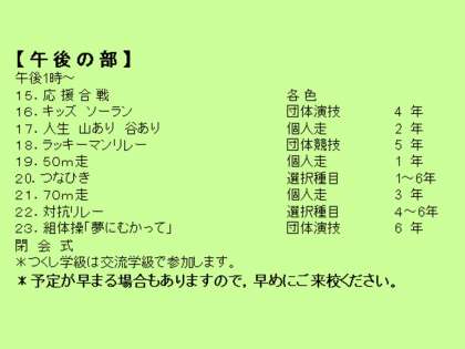 9月18日(土)に実施します「運動会」のプログラムです。
