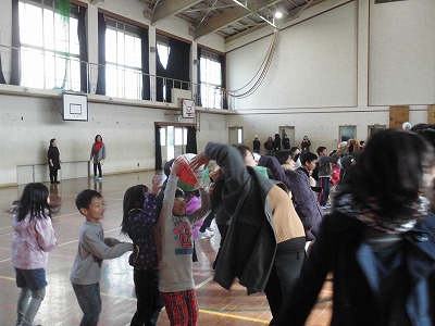 1年生2クラスとその保護者の皆さんでレクリエーションをチーム対抗で楽しみました。