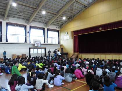 大地震が起こった場合を想定して,避難訓練を行いました。校舎内に通れなくなった場を設けて,臨機応変に避難経路を考えて行動できるようにしました。