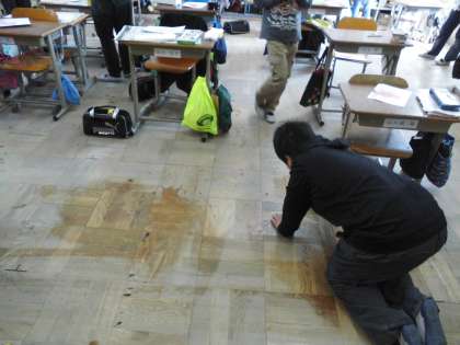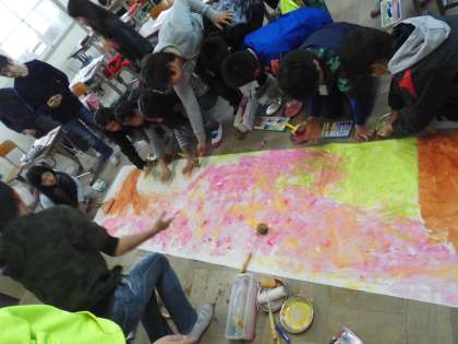 みんなで一つの作品にしようと大きな紙に色をつけてみました。