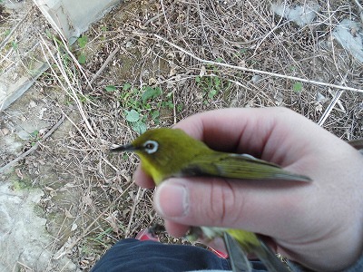 行ってみると冬のおわりから春にこの地域で見られるメジロでした。