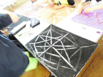 今日は消してできた空白の部分に、違う色のコンテを加えました。