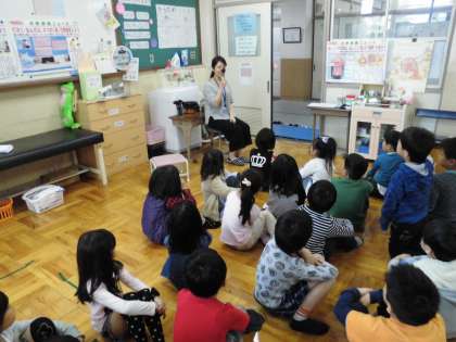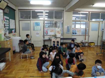 養護の先生に視力検査の仕方を教えてもらい、視力検査をしました。