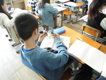 今日は算数「対称な図形」で鏡を使っていろいろな図形に変身させる学習をしました。適当に鏡をおいて…ではなく,対称の軸や対称の中心など学習を生かして変身させていきました。