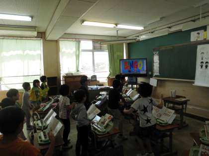 音楽科でみんなで楽しく「BINGO」を歌っています。子どもたちもこの歌をとても気に入り、何回も大喜びで体を動かしながら友だちと一緒に楽しく歌っています。