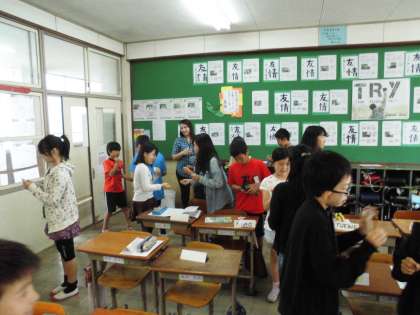 マルタ先生との外国語活動。6年生になって,外国語活動は楽しんで取り組めているようです。