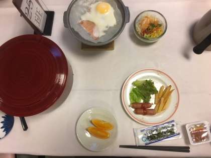 みんな朝早くから目が覚めていたようで,食欲旺盛でしっかり朝ご飯を食べました。