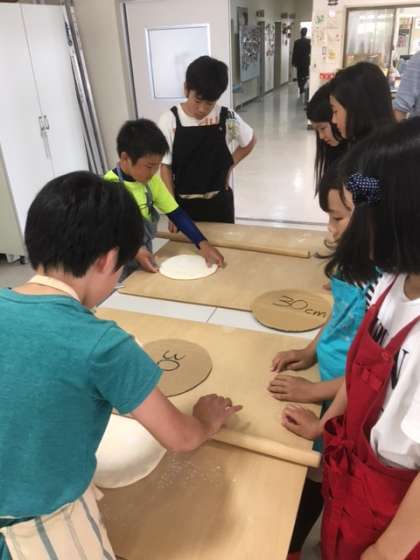 慎重に麺棒でのばします。思わず力が入ります。
