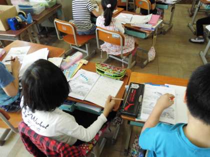 算数科で「長さ」の学習が始まりました。見た目ではあちらの方が長いと思っていたけど,同じ基準となる長さのいくつ分として実際にはかってみると・・・「あれ?こちらの方が長かった。」という声が多く出てきました。これから色々なものの長さをはかっていきます。