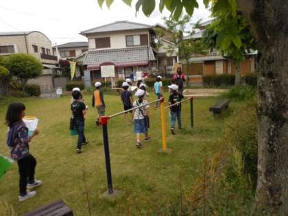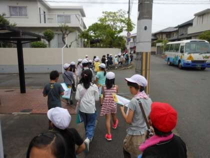 3年生は社会科の学習で校区を調べに行きました。今日は校区の南側を調べました。実際に歩いてみると,公園や中学校の位置が福西小学校から見てどこにあるのか,よくわかりました。