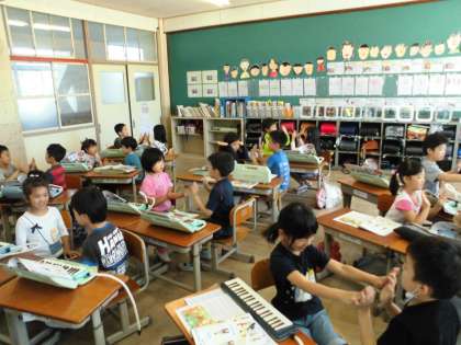 音楽科で3拍子の曲の学習をしています。お友達と一緒に手をたたいて,曲に合わせて3拍子の練習をしています。うまくお友達とリズムが合うよう頑張っていました。
