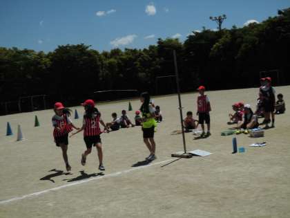 ビブスのたたみ方にもこだわる,チームで励まし合う,バトンパスが向上する,