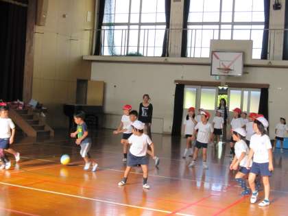今日〈10月6日)は2年生の学年活動日です。おうちの方といっしょにドッジボールを楽しみました。「えいっ。」と力いっぱいおうちの人めがけてボールを投げていました。おうちの方も飛んできたボールをうまく受けたりよけたりされていました。