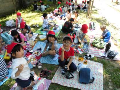 お弁当もグループで楽しく食べた後,公園で楽しく遊びました。またこれからも一緒に仲良く活動しましょうね。