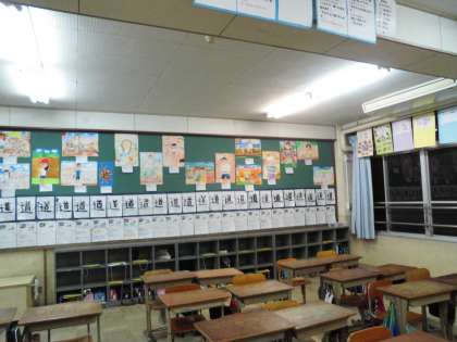 教室には、習字「道」、図工「計量図画」、またこれまでのノートのコピーなどを掲示しています。保護者様も参加型のクイズ形式の掲示もありますので、ぜひチャレンジしてみてください。