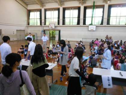 日曜参観の最後は緊急時を想定した児童引き渡し訓練でした。