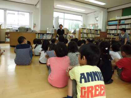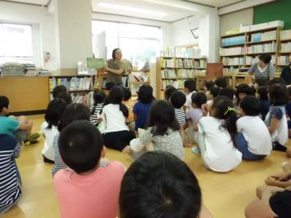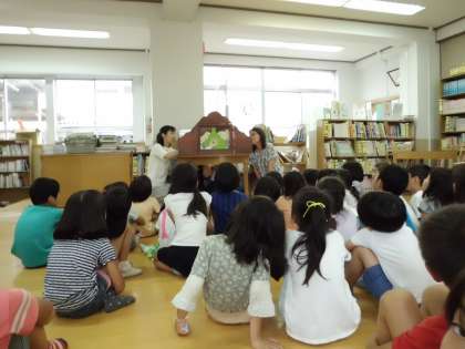 今月も「おはなしでてこい」をしていただきました。今回も子ども達は大喜び。色々なお話や手遊び,英語のクイズなどがありました。英語の絵本は2回目ですが「英語がわかるようになった。」「英語が話せるようになった。」と英語の学習にも手ごたえを感じているようです。