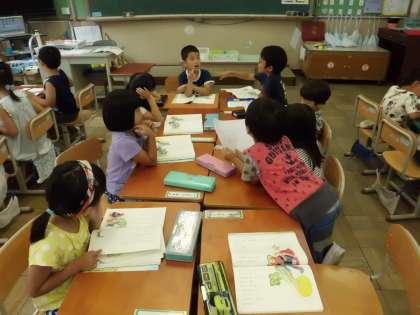 「おおきなかぶ」の音読発表会に向けて,グループミーティングや練習をしました。子ども達はしっかりと話し合いをして,早く発表をしたくなりました。わくわくしています。