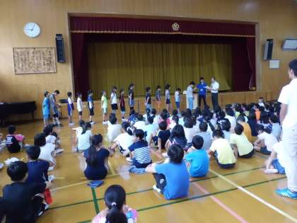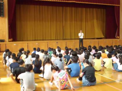 今日が夏休み前最後の朝会でした。朝会では6年生の歯の表彰も受けました。また,いつも取り組んでいる学校のルールをもう一度確認し,けじめをつけて1日を過ごそうと,みんなで話し合いました。これまで,たくさんの成功や頑張りを見せてくれました6年生です。安全に過ごして,さらにパワーアップした6年生になってくれることを楽しみにしています。最高の,そして感動の夏休みにしてください。