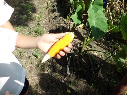 苗から育てていたポップコーンを収穫しました。自分たちで調理してポップコーンパーティーを開きます。楽しみですね!