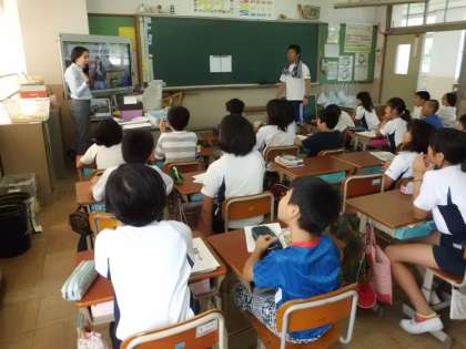 外国語活動の学習で、新しいALTの先生、マリダ先生が来てくれました。マリダ先生の自己紹介や出身の話、家族の話などを通して、楽しく外国語活動ができました。子どもたちはマリダ先生の英語の発音を、繰り返し真似をしながら、楽しんで学習していました。