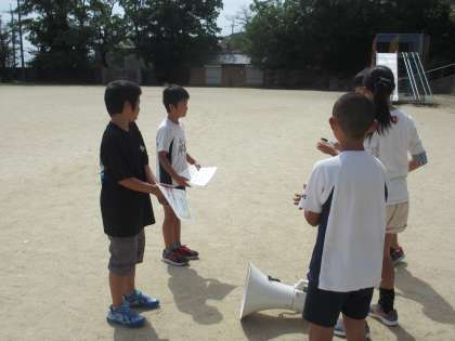 運動委員会主催のリレー大会がありました。2チームに分かれて対戦したレースは,最後まで接戦になり,とてもおもしろかったです。また,運動会が楽しみです。