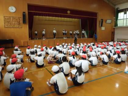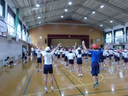 今日は運動会にむけての全校練習でした。全校ダンス担当の係の子どもたちが前に出て,最高の見本を見せてくれました。6年生にとっては小学校生活最後の運動会です。今日のダンスのように後輩たちをリードして,運動会を大成功に導いてほしいと思います。