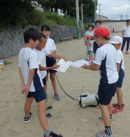 中間休みに運動委員会が企画するリレー大会がありました。赤白対抗で行いました。とても白熱した戦いで結果は両チーム同点,優勝でした。子どもたちはやり切った様子で,さらに運動会を待ち遠しく感じている様子でした。