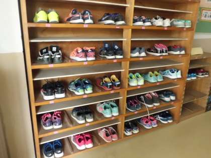 傘と靴がきれいに並んでいます。さすが6年生! 見ていても大変気持ちがいいです。全校のみんなが,6年生のように傘や靴が片付けられるといいなと思います。