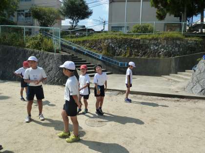 体育の休憩時間に国語で学習している「ちいちゃんのかげおくり」のかげおくりを子どもたちがしていました。晴れた空に子どもたちのかげがくっきり浮かんでいたようです。