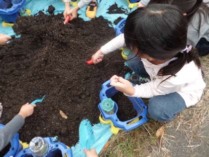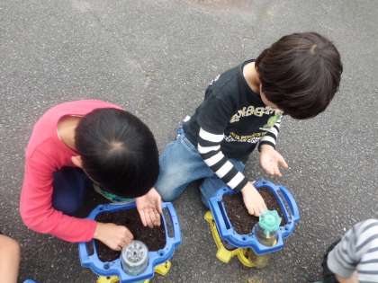生活の学習の「秋から育てる野菜」の学習で,ハツカダイコンを育てます。ミニトマトは苗から育てましたが,ハツカダイコンは種から育てます。植木鉢の土を入れかえ,種まきをしました。ハツカダイコンの種は小さいので,落とさないように慎重に行っていました。芽が出るのを心待ちにしている子ども達です。