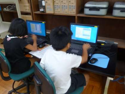 総合の学習でコンピュータの使い方について学習しました。国語で学習したローマ字を使い,名刺を作りました。これからさらにローマ字を学習していきたいと思います。