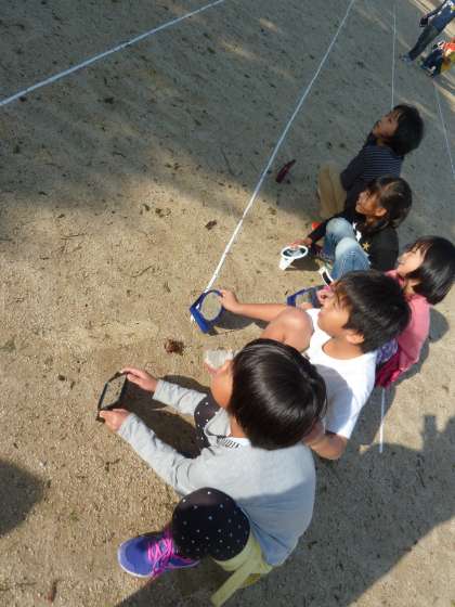 理科で光の進み方について学習しています。今日は鏡を使って光はどう進むのかを実験しました。光はまっすぐ進むことがわかったようです。遮光板を使って太陽の様子も観察しました。