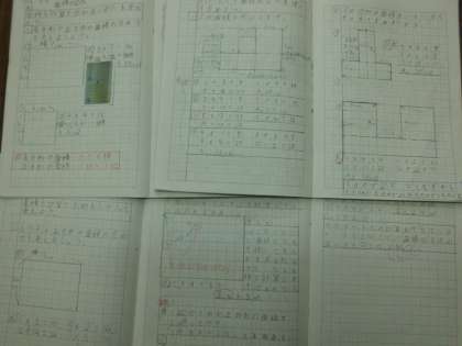 4年生は,算数科で『面積』の学習をしています。子どもたちのノートをみると,一人ひとりが図や導き出した答えのプロセスをしっかりとノートに書き,学習を深めています。