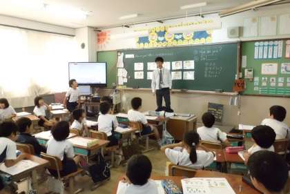 英語活動でHow are you?を使っていろいろな表現を学習しました。自分の状態に合わせてジェスチャーも使いながら表現しました。あっという間に習得していろんな友達と交流していた子どもたちです。
