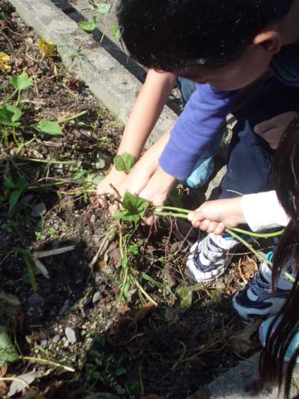 花壇で育てていたさつまいもをほりました。今年は,つるも自分達で切って取り除き,その後にほりました。収穫できて,うれしそうでした。