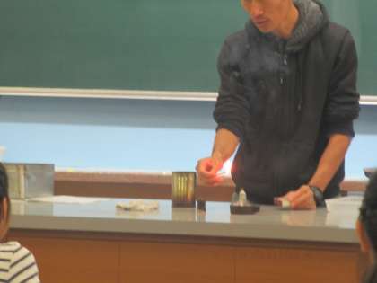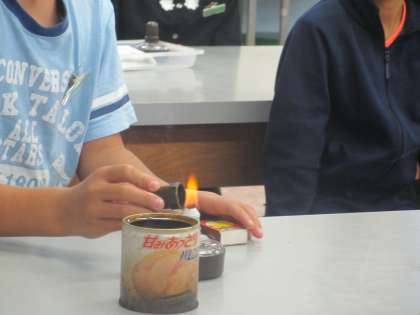 理科室でアルコールランプの使い方を学習しました。はじめに,マッチの擦り方を学び,一人ずつアルコールランプに火をつける練習をしました。マッチを擦るのは,初めての子が多くて,おそるおそるマッチ棒を擦り,うまく火がつくと,とてもうれしそうにしていました。初めての体験でドキドキしましたが,とてもよい体験になったと思います。