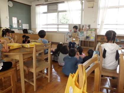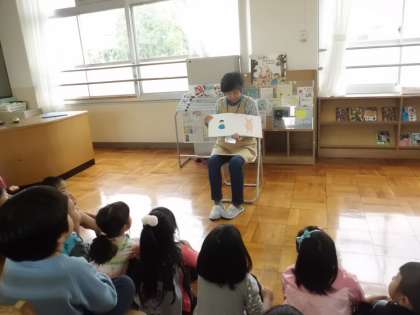 図書館で,学校司書の遠山先生に手話を取り入れられた絵本を紹介していただき,簡単な手話を楽しみながら本に親しみました。今月はどんぐり読書月間で3冊借りることができます。今月もいっぱい本に親しんでほしいです。