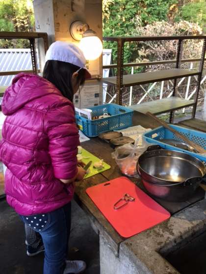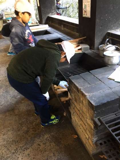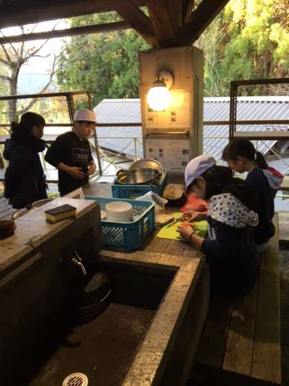 野外炊事「カレーライス」を頑張っている様子が届きました。どんな味になるのでしょうか??
