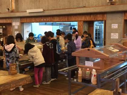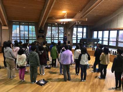 遅ればせながら,朝の集いと朝食様子の写真が届きました。