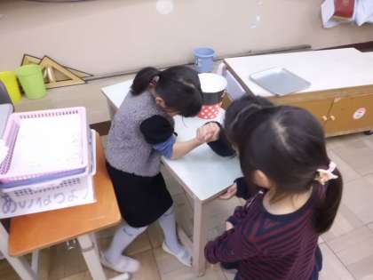 雨の日の休み時間は教室で過ごすか,学校図書館に行くかが多いですが,最近,「うでずもう大会」をする子が増えています。女子も強い子がいて,みんなで盛り上がっています。また一つ,安全に遊べる遊びが増えました。
