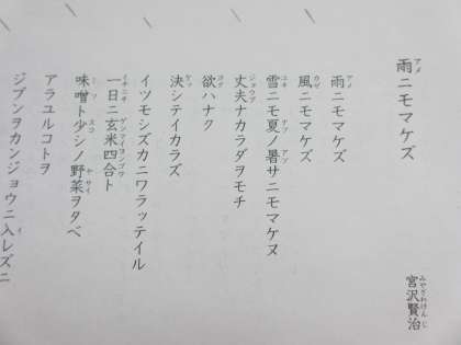 4年生は,詩や文学作品の音読に取り組んでいます。ベルが鳴ったら,一斉に音読を始めます。今は,宮沢賢治さんの「雨ニモマケズ」に挑戦しています。覚えて暗唱できる子もいます。がんばって続けたいと思います。