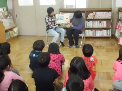 今月も詩・素話・絵本・ゲームといろいろな形で読み聞かせをしてくださり,子ども達は本の世界に入り込み楽しんでいました。朝から,「先生,今日はおはなしでてこいがあるよね」と言いに来て,毎月楽しみにしています。